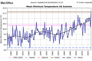 It was far from the hottest, driest, or sunniest summer since 1884 and the only thing which marked it out as being unusual was the large jump in minimum…