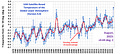 There has been a very slight increase in lower tropospheric global mean temperature during August, versus July, when it increased significantly. As you can see from the graph, as things normally go, global temperature spikes briefly (due to El Nino events) and then drops rapidly thereafter. The current El Nino has only just got going and ensemble forecasts predict that it will be a moderate event at best, so it’s not currently El Nino which is keeping global temperatures high and as we note, El Nino causes temperatures to spike, briefly, usually during late winter/spring, soon after mid tropical Pacific ocean temperatures reach their peak around Christmas (hence El Nino = ‘the boy child’).